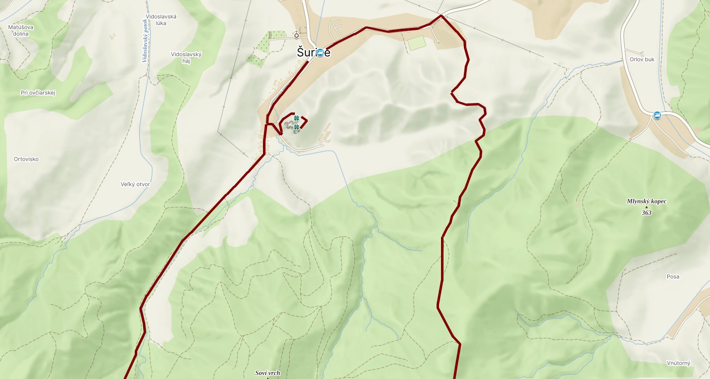 A forrás után útelágazóhoz érünk - a jobb oldali út a Magyarbánya érintésével a Medves-fennsík laposára vezet, Medvespusztán keresztül, de mi a bal oldali úton, egy tanya mellett leereszkedünk a Bukovinka patak medrébe, a Somoskői vár alá. a patakon átkelve JOBBRA fordulunk, majd egy kis fehér házikó mellett elhaladva egy régi határsorompó mellett ismét a Felvidéki oldalon folytatjuk utunkat. Rövid emelkedőt követően a Macskalyuki kőbánya töltésén találjuk magunkat.